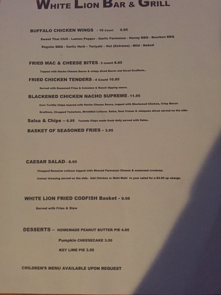 White Lion Restaurant & Pub, located in St Augustine, FL, offers a cozy atmosphere with friendly and knowledgeable staff. Known for their affordable prices and fun vibe, this spot is a must-visit for both locals and tourists. The bar and pub area receives high praise, with bartenders like Crystal and Mark standing out for their exceptional service and tasty shots. The outdoor seating area provides a great place to relax and enjoy drinks, while the inside offers a dance floor and plenty of seating options. The menu includes happy hour specials and a full bar, catering to all types of guests. The PB&J shot is a popular choice among patrons, showcasing the creativity and quality of the drinks served. White Lion Restaurant & Pub truly captures the essence of a welcoming and lively dining experience.